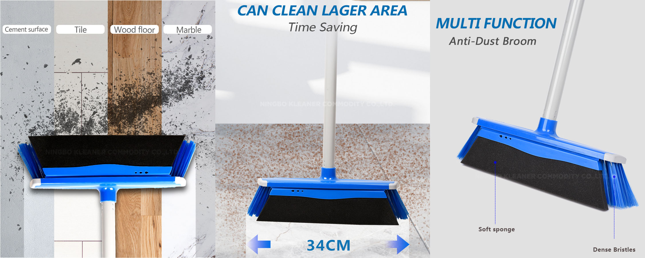 مكنسة تنظيف ضد الغبار بتصميم عملي، مزودة بشعيرات قوية مع اسفنجة ومكشطة للاستخدام المزدوج، تساعد على تنظيف الارضيات بفعالية وسهولة.